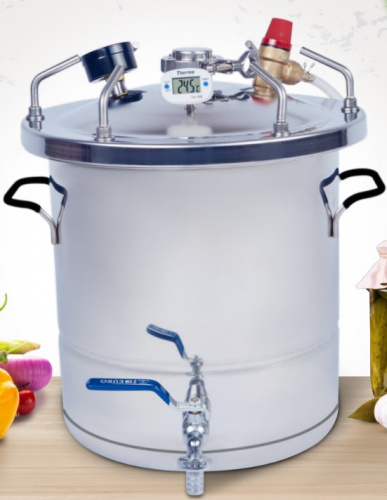 Автоклав для домашнего консервирования в режиме стерилизации. Разовая загрузка до 10 шт 0,5л банок. Клапан для сброса лишнего давления выше 3 атм.
