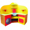 изготовлена из ЛДСП, торцы облицованы кромкой ПВХ 2 мм. Состоит из угловой секции, имитирующей раковину и двух боковых секций, имитирующих стиральную машину и печку. Над столом крепится панель с 4 полочками