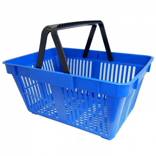 Легкая и прочная корзина из ударопрочного пластика синего цвета с двумя ручками чёрного цвета. Объём: 20 л.