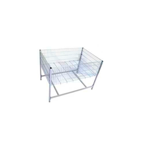 Глубина сетчатого контейнера торгового манежа 385 мм. Корзина имеет оцинкованные сетчатые стенки и сборный каркас, покрытый порошковой краской. Для разделения объема распродажного стола на несколько секций предусмотрены вертикальные разделители TSD6 (опция).