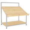 Материал: массив сосна. Овощной развал - разборной стеллаж с реечным каркасом, прочными стойками, нижней полкой и пластиковыми регулируемыми опорами.
