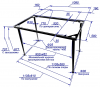 Каркас включает цельносварную прямоугольную раму и четыре полуконические (с кони-ческой нижней частью) ножки, соединенные с рамой болтами и гайками М10. Ножки устанав-ливаются с наклоном, что повышает устойчивость, а также продольную и поперечную жесткость изделия. Предусматривается крепление столешницы к каркасу четырьмя шуру-пами сквозь отверстия Ф5 в приваренных к раме ушках («флажках»).