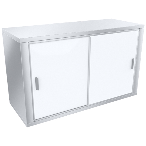 Полка кухонная закрытая выполнена из нержавеющей стали марки AISI 430. Полка оснащена дверцами-купе из пластика белого цвета. Полка устанавливается на стену. Поставляется в собранном виде. Упаковка стрейч-пленка.