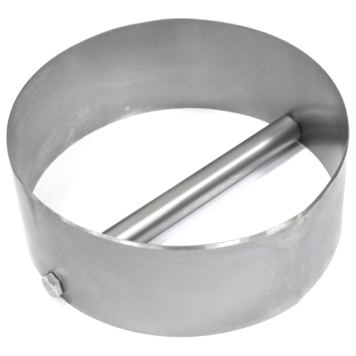Вырубное кольцо предназначено для вырубки тестовой заготовки из пласта теста для лепки хинкили, чебуреков, самсы и других изделий из теста. Диаметр тестовой заготовки 180 мм.