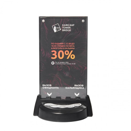 Совместимость с пейджерами: пейджер APE6600-F, пейджер APE6800 в режиме Single-Call. Размеры подставки под листовку: 96x170 мм