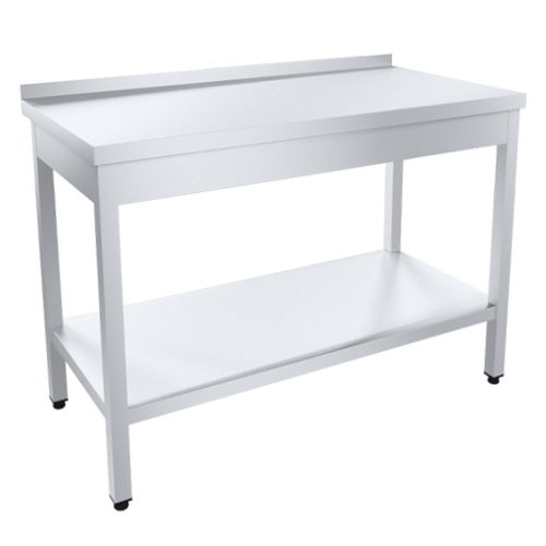 С бортом. Полка сплошная из нержавеющей стали AISI 430 толщиной 0,8 мм.