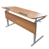 Столешница: размер: длина рабочей плоскости 1200 мм, ширина рабочей плоскости 500 мм. Облицовка столешницы кромкой ПВХ толщиной 2мм. Обработка острых краев кромки столешницы по радиусу по всей длине обязательно. Углы скруглены. Крепление к металлокаркасу с помощью скрытых металлических футорок – без выступающих на рабочей поверхности болтов. Регулировка наклона столешницы на 3 положения от 0 до 16 градусов. Для удобства хранения пишущих принадлежностей в столешни