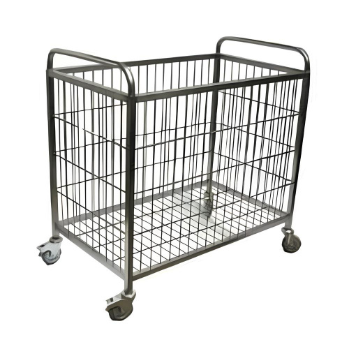 Тележка для белья на 200л. Корпус металл, полимерное покрытие металлик. Грузоподъемность 50кг. Платформа- сетка. Возможна установка мощных колес для работы на улице.