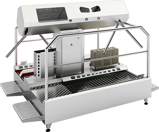 3) Для комплексного контроля гигиены. Данные установки обладают тремя-четырьмя модулями: турникет, модули для мытья и дезинфекции рук и ног.